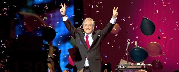 Eccolo Sebastían Piñera, padrone di Lan Chile, il candidato della destra cilena alla presidenza della Repubblica si presenta all’americana, trombe, pompon, coriandoli, folla in delirio e musica di guerre stellari. Mezzo Berlusconi e mezzo Pinochet è il peggio che passa il convento cileno (e pertanto può farcela).