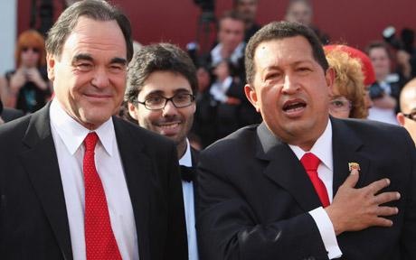 Non poteva passare inosservata la passerella veneziana del presidente venezuelano Hugo Chávez (nella foto con Oliver Stone).