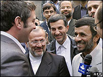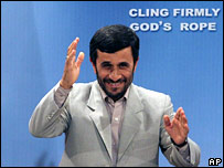 Poco più a sud-est, ma nello stesso cono d’ombra della storia, un altro spot illumina il Feroce Saladino, alias Mahmud Ahmadinejad, che elegante proprio non riesce ad essere, ed anzi ha riciclato per l’occasione il vestito usato da mio nonno quando passò il Fronte ed andò a piedi da Napoli fino all’Argentario. Orrore! Perfino Ahmadinejad ha imparato e invece di lugubri frequentazioni negazioniste dispensa sorrisi, abbracci e baci come fosse Roberto Benigni all’Ariston con Pippo Baudo.