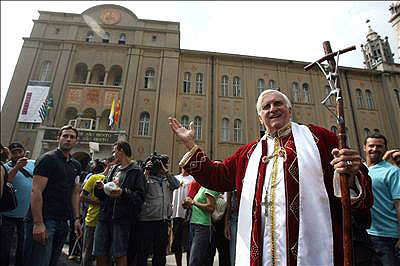 Anche se Aldo Maria Valli del TG3 ha cominciato il suo servizio di ieri alle 19 con un interessante "il papa è arrivato a Sao Paulo nell’indifferenza generale" il poliziotto in pensione Moacir Rodrigues, già famoso per aver santificato pubblicamente il portiere del Brasile campione del mondo 2002, si guadagna la vita come sosia di papa Bento XVI.