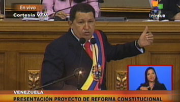 Il presidente venezuelano Hugo Chávez ha presentato ieri la sua proposta di riforma costituzionale. Questa dovrà adesso subire ben tre letture da parte del Parlamento e quindi sarà sottomessa ad un Referendum popolare per l’approvazione definitiva. La proposta di Chávez vuole adeguare la Costituzione della V Repubblica venezuelana al nuovo mandato concesso dagli elettori al presidente lo scorso 3 dicembre 2006, con il 63% dei voti: la costruzione del Socialismo del XXI secolo.