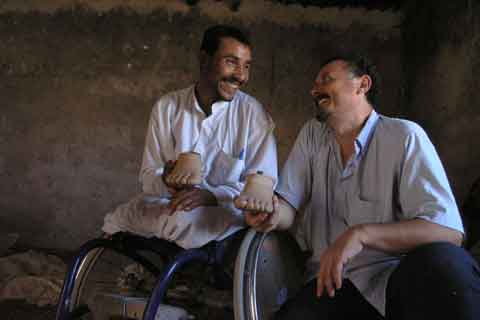 La foto è troppo bella e, pur se conosciutissima, è bello citarla. Ci ricorda Enzo Baldoni, un uomo onesto, che viaggiava, viveva e raccontava questo mondo sempre più barbaro. Una persona di quelle belle, di quelle che se ce ne fossero di più, questo mondo sarebbe altro. Perciò quelli che vivono di verità preconfezionate, in morte, lo hanno deriso, vilipeso, calunniato.