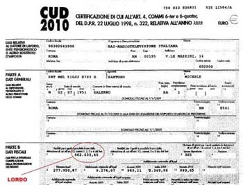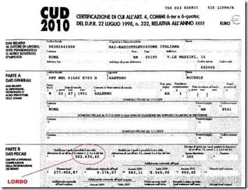 662.000 Euro è il CUD 2010 di Michele Santoro. E’ una bellissima cifra ma non è una fortuna, dunque. Almeno non lo è per il dorato mondo tivù dove il signor Lele Mora si è potuto permettere (o almeno dichiara) di fare regali per tre milioni di Euro al suo amante Fabrizio Corona.