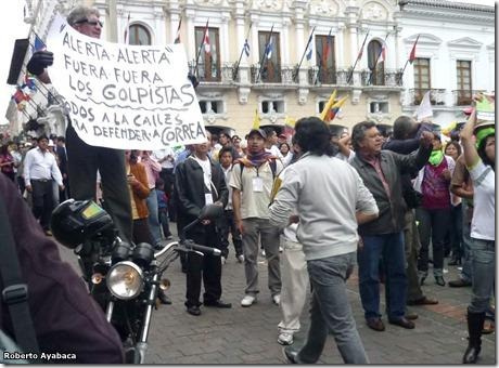 Come Giornalismo partecipativo aveva annunciato fin dall’1.30 ora italiana la strada del blitz per liberare il presidente prendeva campo come l’unica possibile. Intanto era sempre più importanti le testimonianze sulle infiltrazioni nella polizia, su civili in genere riconoscibili come vicini a Lucio Gutiérrez (l’ex presidente fondomonetarista su posizioni apertamente eversive) per esempio nell’assalto a Ecuador TV subito dopo che il canale pubblico era riuscito a far parlare in diretta al paese il presidente ancora sequestrato. Gli squadristi che hanno assaltato Ecuador TV e spento il segnale per oltre un’ora non erano infatti poliziotti ma civili comandati da Pablo Guerrero, avvocato di Lucio Gutiérrez.