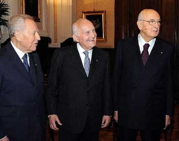 Non fosse stato per il democristiano piemontese Oscar Luigi Scalfaro (1918), per l’azionista livornese Carlo Azeglio Ciampi (1920) e per il comunista campano Giorgio Napolitano (1925), probabilmente l’Italia sarebbe già caduta definitivamente in quella satrapia dell’interesse privato mascherata con le barzellette che è l’era berlusconiana, e nella dissoluzione dello Stato (non solo della Nazione) alimentata dall’odio e dalla paura rappresentato dagli squadristi in camicia verde.