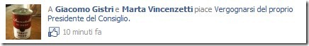 A due miei amici (che spero non si adontino della citazione) e altre 126.075 persone piace vergognarsi del proprio Presidente del Consiglio. Contenti loro (mentre Dante si rivolta nella tomba). Io, invece, non provo alcun piacere ad aver un presidente del consiglio come Silvio Berlusconi del quale vergognarmi. Preferirei piuttosto (strano, no?) avere un Presidente del Consiglio del quale essere orgoglioso.