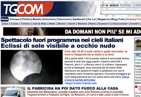 Paolo Attivissimo segnala una perla del TGCOM (un infortunio?). Per il giornale online di casa Berlusconi l’eclissi di questa mattina era “fuori programma”!