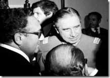 Di Henry Kissinger (nella foto con Augusto Pinochet), che molti considerano il mandante supremo del Condor, ed il gestore principale del processo dittatoriale instaurato in America latina in quegli anni, è sicuramente possibile affermare che fu al corrente di tutto fin dall’inizio, giacché è dimostrato che avesse un filo diretto con il capo della polizia segreta cilena, la famigerata DINA, Manuel Contreras.