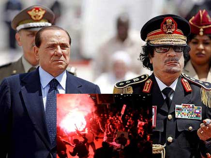 Appena poche settimane fa Gheddafi sfilava a Roma con onori inauditi. Chi ha coperto l’Italia di questa e di mille altre vergogne deve pagare.
