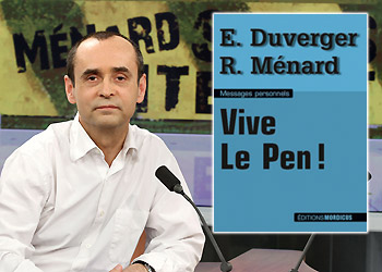 Nel corso di questi anni ha fatto parlare di sé per posizioni sempre più estreme, islamofobe, omofobe, per la pena di morte e a favore della tortura. Oggi, dopo aver abbandonato RSF, il libello “Vive le Pen”, a giorni in libreria a Parigi e firmato con la moglie, Emmanuelle Duverger, vuole essere la risposta di estrema destra a “Indignez-vous!” (Indignatevi!) di Stéphane Hessel. Nel pamphlet Ménard prova ancora a vendersi come paladino della libertà d’espressione ma per denunciare stavolta la discriminazione da parte dei media e della politica francese, in particolare di quelli di sinistra, contro l’estrema destra e la censura contro le “idee” razziste e fasciste propagandate dal Front National. Furbo come una volpe Ménard cita continuamente Voltaire (darebbe la vita per permettere al negazionista della Shoah Robert Faurisson di dire la sua, sic) e non ammette ancora di voler entrare in politica nel Front National ma ci gira intorno e sostiene di considerare giuste le motivazioni degli elettori del FN oltre che il programma di quel partito.
