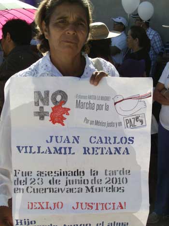 Javier Sicilia, intellettuale cattolico formatosi con i testi della teologia della liberazione, collaboratore de La Jornada, e un gruppo di difensori di diritti umani a lui vicino (come Pietro Ameglio, di origine italiana, autore di scritti sulla non violenza e il pensiero gandhiano e membro di Serpaj, un’istituzione cattolica per i diritti umani attiva in tutta l’America Latina, o Emilio Álvarez Icaza, ex presidente della Commissione per i Diritti Umani di Città del Messico) provenienti da una élite cattolica progressista radicata nella città di Cuernavaca (piccola isola di verde e tranquillità a pochi passi da Città del Messico raggiunta dal 2009 dall’eco delle violenze), hanno chiamato la cittadinanza a manifestare il proprio dolore e la propria rabbia. Il grido di un “ora basta” collettivo è stato lanciato contro il crimine organizzato, ma anche e soprattutto contro quelle istituzioni che dovrebbero garantire la sicurezza e la giustizia e che invece stanno provocando solo terrore e impunità: 40.000 vittime e 10.000 desaparecidos dal 2006 ad oggi, 98% delle indagini non portate a termine, abusi e violazioni dell’esercito e della polizia federale che dal 2007 sono stati inviati nei punti caldi del paese (in particolare lungo la frontiera tra Messico e Stati Uniti ma anche in stati come il Michoacán o Sinaloa, centri importanti di produzione e transito di droga e luogo di origine, il secondo in particolare, dei più importanti capi delle organizzazioni criminali) nell’ambito della strategia di “guerra al narcotraffico”, responsabilità delle autorità a tutti i livelli di governo, che in questo paese sono al massimo di un discredito di lungo corso e spesso se non quasi sempre conniventi col crimine organizzato (come rivela una dettagliatissima inchiesta di una giornalista messicana, Anabel Hernández).