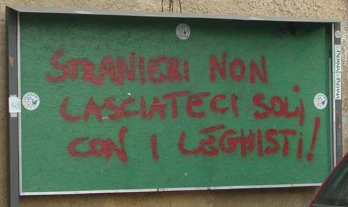 L’episodio, orribile in sé nella sua semplicità evocativa, che riporto a breve, sarebbe avvenuto lo scorso maggio in provincia di Belluno e che solo alcune cronache riportano nella sua marginalità, ha dei tratti grotteschi. Allo stesso tempo è la fedele rappresentazione di quanto accade nell’Italia che non ha impedito ad un partito razzista come la Lega Nord di stare al governo e di esercitare impunemente una corruzione devastante delle menti e dei cuori del paese, soprattutto al Nord. Per Don Antonio Sciortino, direttore di Famiglia cristiana, di fronte a questi episodi oramai “il silenzio della Chiesa è assordante”.