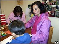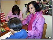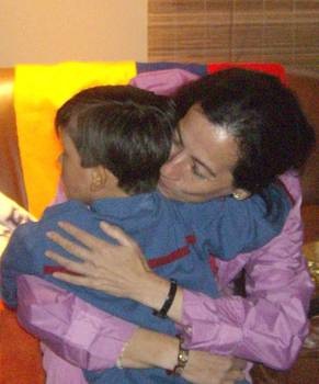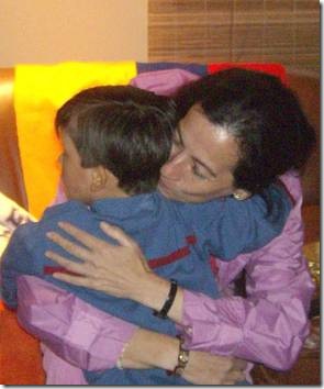 Le due foto che mostriamo sono le uniche due divulgate per il momento dall’istituto pubblico dove si trovava il bambino (mostrato in entrambi i casi di spalle) e dove è avvenuto l’incontro. Clara Rojas è tornata ieri stesso a Bogotà da Caracas alla liberazione dopo i sei anni di sequestro da parte delle FARC.
