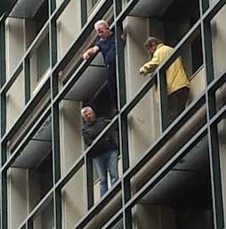 Faccio pochi passi, meno di cento metri, e tutti guardano in su. Da un palazzone di corso 28 ottobre, un tipo in maniche corte, sulla sessantina, si protende nel vuoto da un quarto piano. Non è agitato, solo fa ampi gesti (foto) per allontanare i tre vicini che hanno scavalcato perplessi le ringhiere e cercano di convincerlo a rientrare. Lui parla ad alta voce, appare depresso, sconfortato più che alterato. Minaccia di buttarsi nel vuoto, ma si aggrappa forte alla grondaia. Di sotto la polizia ha messo i soliti nastri di plastica per circondare la zona. I curiosi sono decine ma tutti sembrano tranquilli. Un paio di telecamere riprendono la scena dal basso. Del resto il tutto è da film americano. Rimango qualche minuto col naso all’insù, poi decido di allontanarmi. Piove ma non fa freddo.