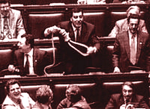 La Lega Nord invoca la forca in Parlamento per i politici corrotti.