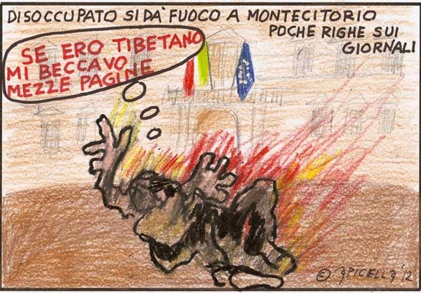 Splendido Apicella sulla non notizia del lavoratore che si è dato fuoco di fronte al Parlamento a Roma.