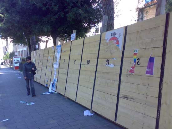 Certo, tutto passa. Anche le maniere di fare propaganda elettorale. Come sono scomparse le tribune elettorali, i grandi comizi in piazza, il porta a porta militante, così possono scomparire i manifesti elettorali, i secchi di colla e tutto il rituale di militanza e anche di scontri per gli spazi. Tutto passa ma questi spazi affissioni vuoti sono particolarmente significativi. E tristi.