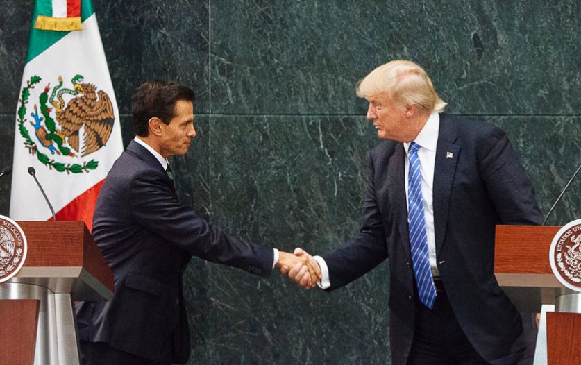 Gli Stati Uniti di Trump hanno un’agenda regionale nordamericana in parte fasulla, in parte mediatica e in parte concreta ma sanno di giocare sul velluto finché dall’altra parte c’è lo screditato Enrique Peña Nieto (nella foto l’incontro di agosto 2016 quando Trump fu accolto quasi come già presidente a Città del Messico, mentre si rinvia ancora un nuovo incontro tra i due).
