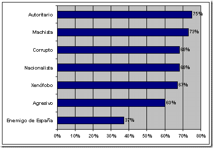 Per due terzi degli spagnoli invece il capo del governo italiano è un corrotto, un nazionalista e uno xenofobo. Meno persone (ma sempre il 60%) pensano che sia aggressivo ma appena poco più di un terzo pensa che sia nemico della Spagna.