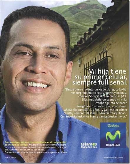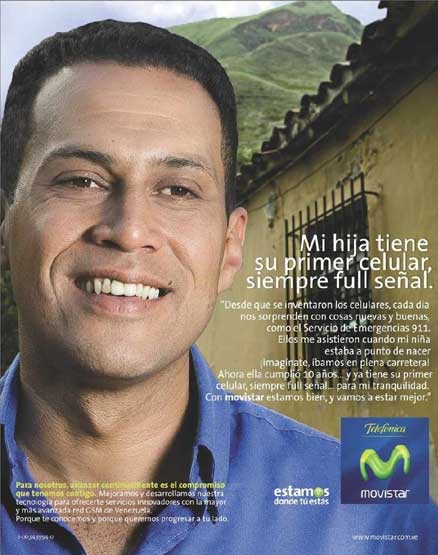 Quella che vediamo non è una pubblicità istituzionale del governo di Hugo Chávez. Movistar è un’impresa privata di telefonia mobile, spagnola, che per fare profitti sceglie come testimonial un lavoratore più nero che meticcio, ma piccola classe media che, comprando il primo cellulare a sua figlia, sta ascendendo socialmente. Quella che vediamo è una pubblicità fatta senza porsi il problema di che razza sia meglio usare per vendere un prodotto ma che semplicemente usa una faccia come quella di chi deve comprare il prodotto. Una rondine non fa primavera ma chissà, anche da questo punto di vista il Venezuela e l’America latina sono in movimento.