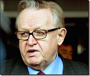 Sicuramente Martti Ahtisaari è un premio Nobel meno telegenico, ma che incarna molto di più l’idea del lavoro costante per la pace e non quella dell’essere simbolo di una battaglia al momento perduta e perfino dimenticata da Ingrid. L’ex presidente finlandese, protagonista di numerose mediazioni internazionali, in Africa, nei Balcani e soprattutto quella che nel 2005 portò alla pace tra l’Indonesia e i ribelli di Aceh incarna sicuramente molto di più quest’idea. E la motivazione dà il senso del motivo per il quale gli viene assegnato: “per i suoi importanti sforzi, in diversi continenti e per oltre un trentennio, per risolvere i conflitti internazionali”.