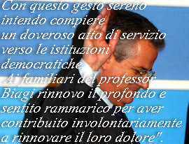 Sono parole volgari e saranno sicuramente smentite. Sono parole che gettano fango su una persona che ha passato gli ultimi mesi della sua vita a segnalare di essere minacciato per poi essere puntualmente assassinato. Ancora Scajola dichiara «A Bologna hanno colpito Biagi che era senza protezione ma se ci fosse stata la scorta i morti sarebbero stati tre». Strana economicista filosofia della sicurezza, quella del Ministro dell’interno. Perché mai al G8 c’erano 15.000 poliziotti? Perché mai Falcone e Borsellino erano scortati? Perché mai ha una scorta lei, Claudio Scajola?