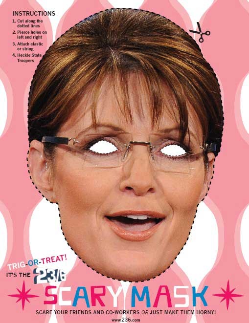 Scary Mask, questo Halloween spaventa i tuoi amici con la maschera di Sarah Palin Da staccare e conservare!