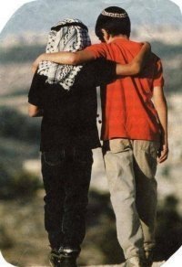 E’ la foto di un ragazzo palestinese e uno israeliano abbracciati che sempre più spesso si vede in giro in Rete.