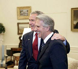 Caro Tabaré, questa foto duole molto. Ma non duole per la foto in se stessa, nessuno pretende che l’Uruguay non abbia relazioni con gli Stati Uniti, o che non ti convenga una photo opportunity con il macellaio in questione, ma per il maneggio con il quale vi si arriva. Mi riferisco al tango che stai ballando con il TLC con gli Stati Uniti e alla milonga con la quale stai giocando con il Mercosur. Da mesi dichiari che vuoi il TLC, forse sì, forse no, a seconda dell’uditorio. Da mesi tuoni contro il Mercosur. Smetti di giocare Tabaré Vázquez, nessun orientale ti ha eletto per questo.