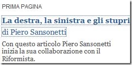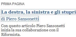 Non ci potevo credere: i due fresconi più fresconi del giornalismo italiano, Antonio Polito e Piero Sansonetti, si sono sposati. Mangiapane a tradimento rispettivamente direttore ed ex direttore di finti giornali pagati coi soldi pubblici, si ritrovano adesso sotto lo stesso tetto, tettuccio, ma sempre col sederino al caldo, de “Il Riformista”. Sì proprio “il Riformista”, l’imprescindibile foglio “né di destra né di sinistra” che ci costa 4 Euro di tasse per ognuna delle 2.000 copiuzze vendute.