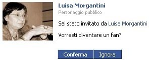 Ora io mi precipiterei a cliccare per diventare fan del Pocho Lavezzi o di Vauro Senesi o di Margherita Hack o magari pure di Noemi quella che chiama Silvio Papi ma non se fossero loro a chiedermelo come avviene nelle immagini che allego. Ma ci avete riflettuto o fate fare alle agenzie di pubblicità?