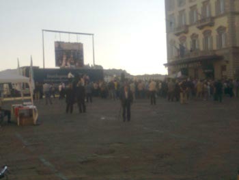 Naturalmente i carabinieri non lo ammettevano, si inventavano scuse (la piazza è piena di gente, una su tutte). Ma ho visto e sentito con i miei occhi molte cose, l’arroganza delle forze dell’ordine, la mancanza di rispetto.. li ho visti far entrare un individuo vestito stile Al Capone dopo che ha saputo dimostrare di essere candidato per il PDL in non so quale comune.. Mentre subito dopo, con gli stessi carabinieri, un’altra persona, candidata a Firenze per il PD, non è potuta entrare.