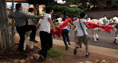 Mentre all’estero il fronte internazionale arriva all’ignominia del governo colombiano che riceve una delegazione golpista in Honduras la tensione è alle stelle. Un grande sciopero generale sta testimoniando in queste ore la forza della resistenza al quale si somma uno sciopero della polizia e Mel Zelaya, il presidente legittimo, sta avviandosi da Managua verso Tegucigalpa in una lunga marcia in sedicesimo tra due ali di folla.