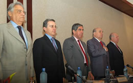 Ad applaudirli, tra gli altri, (nella foto in ordine dopo Cardoso), Álvaro Uribe, Óscar Arias, Julio María Sanguinetti stesso e Ricardo Lagos oltre ad altri dinosauri della politica come l’ex-capo del governo socialista spagnolo, Felipe González.