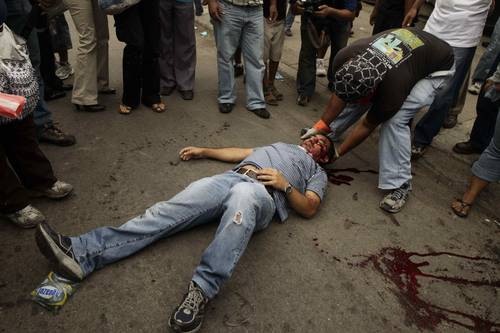La polizia golpista agli ordini di Roberto Micheletti gli ha sparato una pallottola in testa ed è in fin di vita in un ospedale di Tegucigalpa in quello che è stato definito dal Fronte di Resistenza contro il Golpe come il giorno più duro in 33 giorni di golpe.