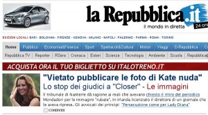 Il topless della signorina Kate è in questo momento prima notizia sul sito de “La Repubblica”, il più venduto quotidiano d’opinione italiano. No, non c’è nulla da ridere di questa deriva senza limiti dell’informazione italiana sempre più in basso.… Continua