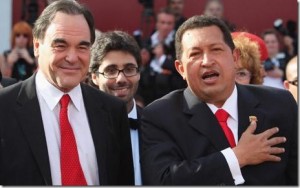Non poteva passare inosservata la passerella veneziana del presidente venezuelano Hugo Chávez (nella foto con Oliver Stone).