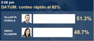 Ad un’ora dalla chiusura dei seggi, nel ballottaggio per le elezioni politiche peruviane, Ollanta Humala (centro-sinistra) appare in leggero vantaggio sulla candidata di destra Keiko Fujimori. Nei sondaggi all’uscita dei seggi (‘exit poll’ in italiano) Humala avrebbe il 52.6% secondo… Continua