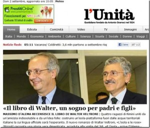 Questa è attualmente la marchetta d’apertura del quotidiano l’Unità online: la presentazione del romanzetto di Veltroni da parte di D’Alema come prima notizia. Da trent’anni Walter Veltroni e Massimo D’Alema fanno a gara per far slittare verso destra la sinistra… Continua